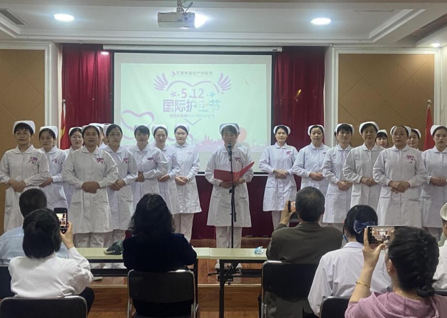 随后,护理部周秀梅主任代领部分护理人员上台进行了南丁格尔誓词宣誓,让现场在座的所有人都感受到了庄严和神圣的时刻。